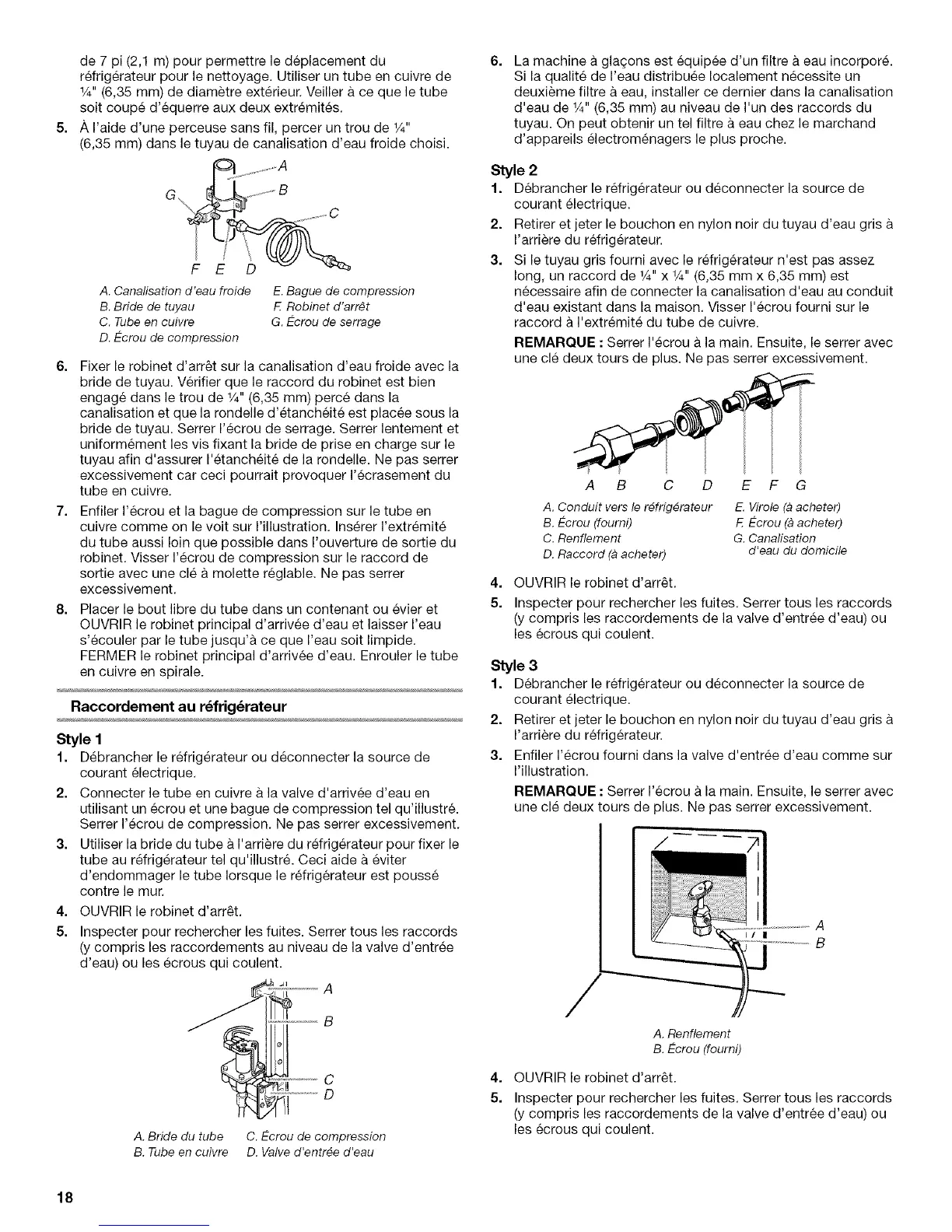 d'eau de W' (6,35 mm) au niveau de I'un des raccords du