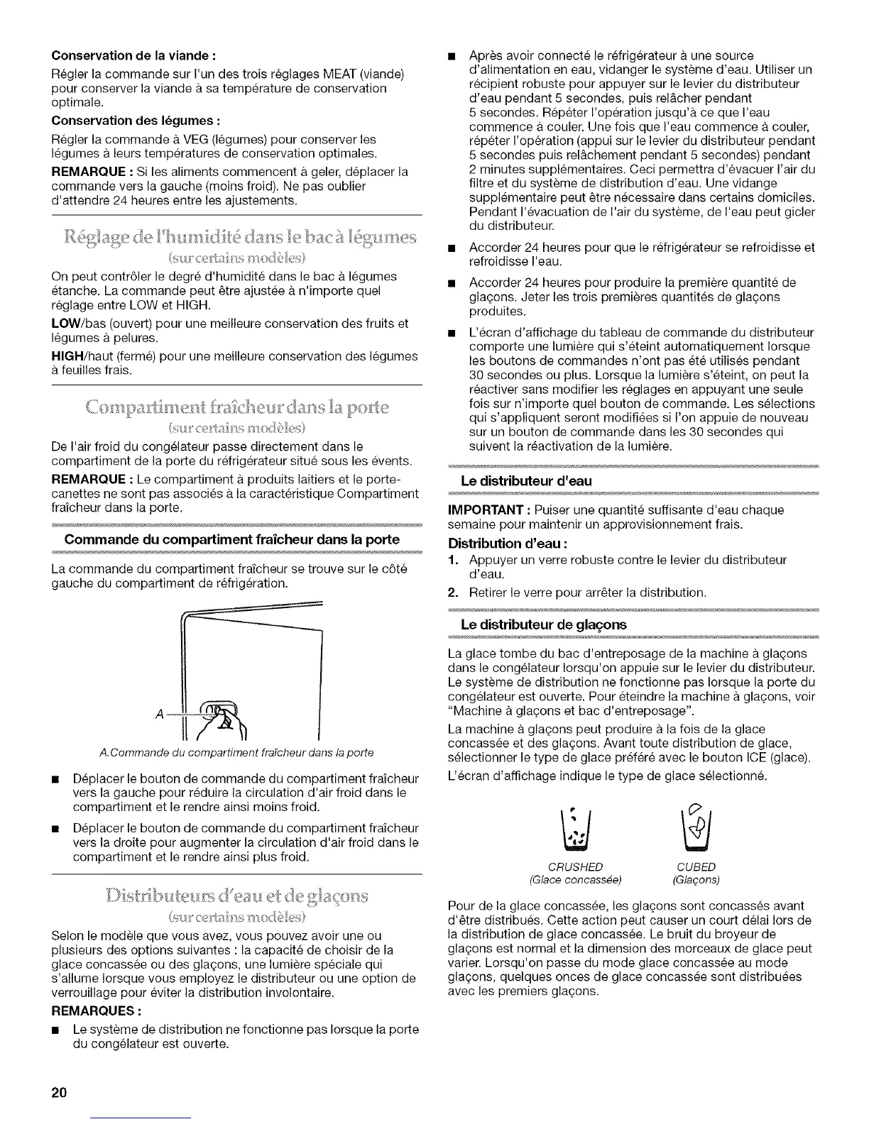 Commande du compartiment fraicheur dans la porte