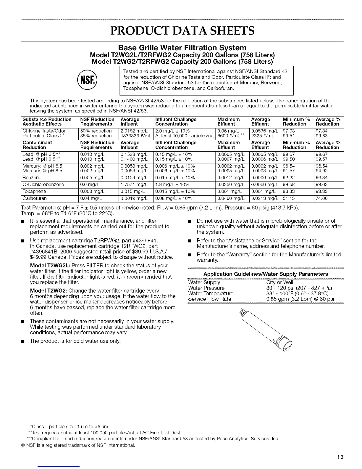 • Use replacement cartridge T2RFWG2, part #4396841.