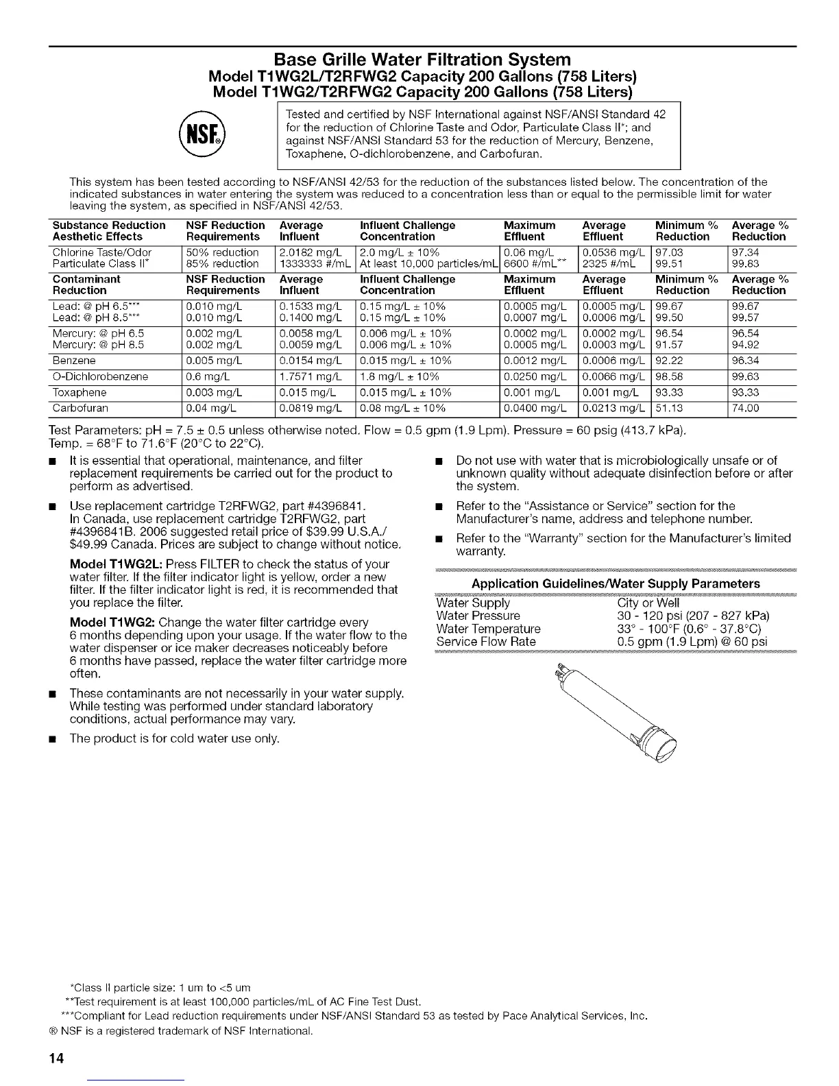 • Use replacement cartridge T2RFWG2, part #4396841.