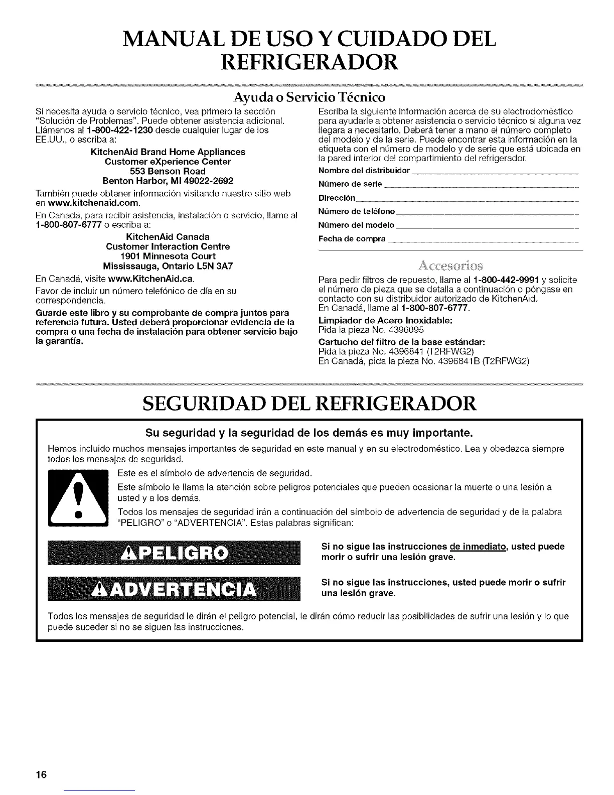 contacto con su distribuidor autorizado de KitchenAid,