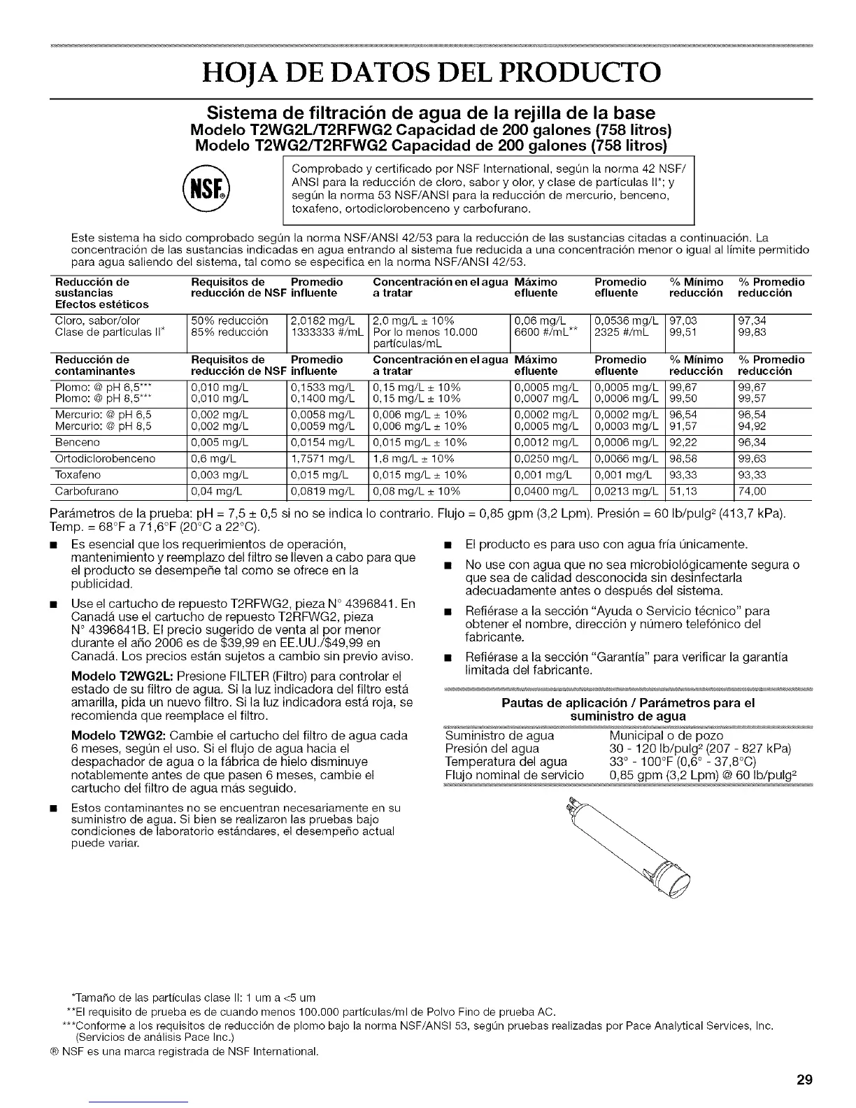Comprobado y certificado por NSF International, segOn la norma 42 NSF/