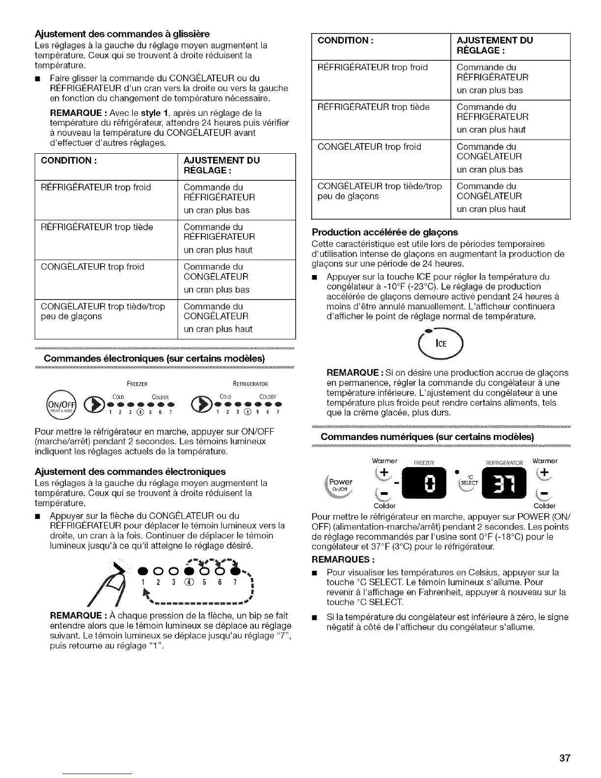temp@ature inf@ieure. L'ajustement du congelateur & une