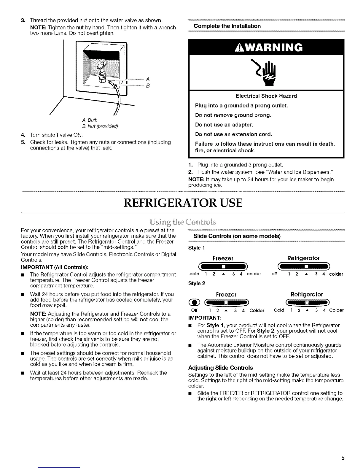 NOTE: Adjusting the Refrigerator and Freezer Controls to a
