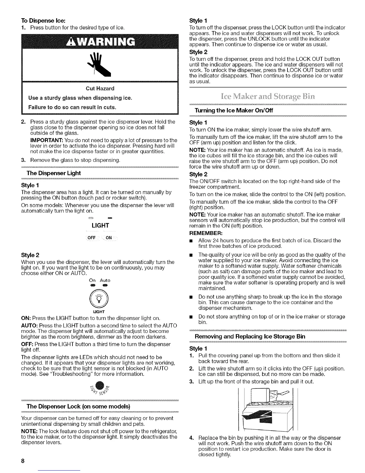 lever in order to activate the ice dispenser. Pressing hard will