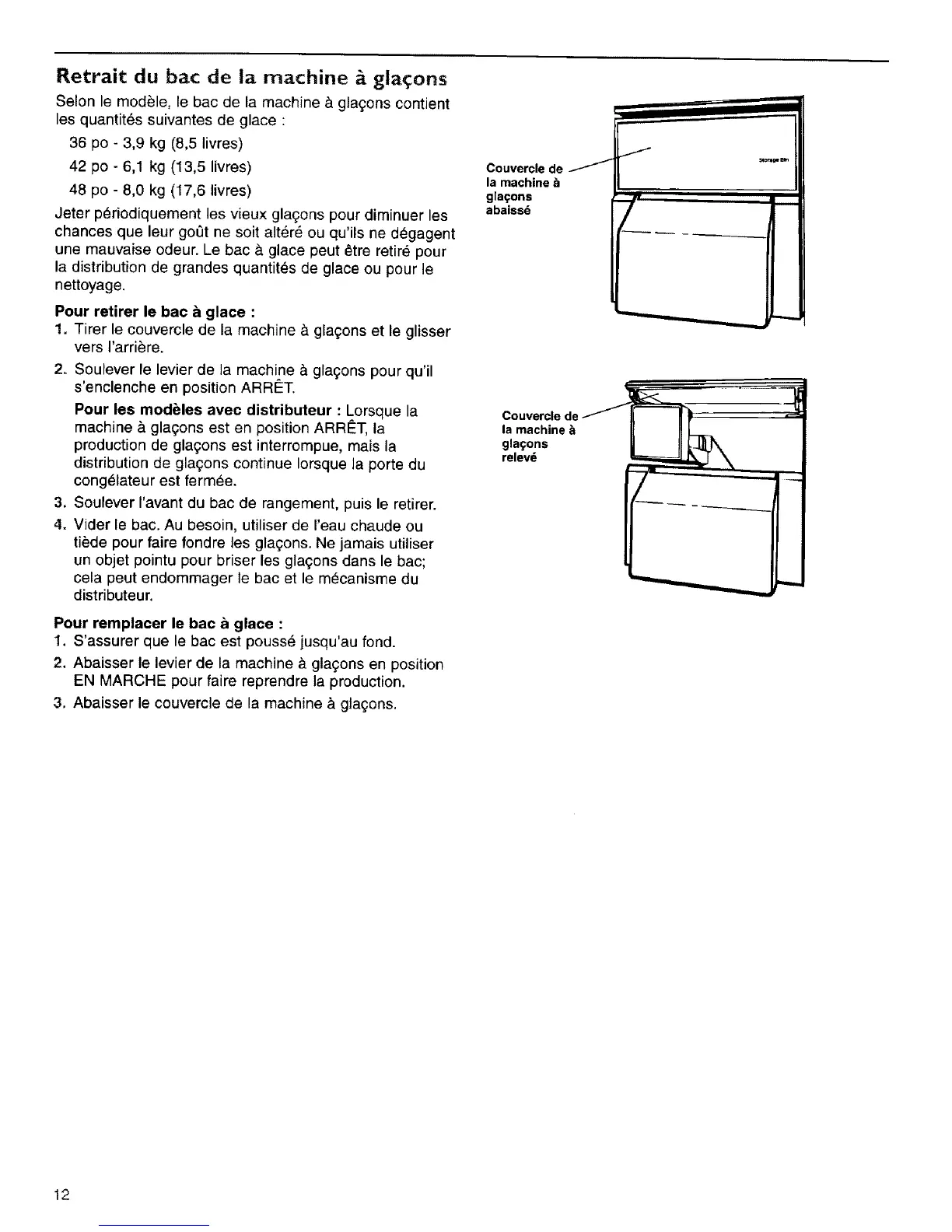 une mauvaise odeur. Le bac a. glace peut _.tre retir_ pour