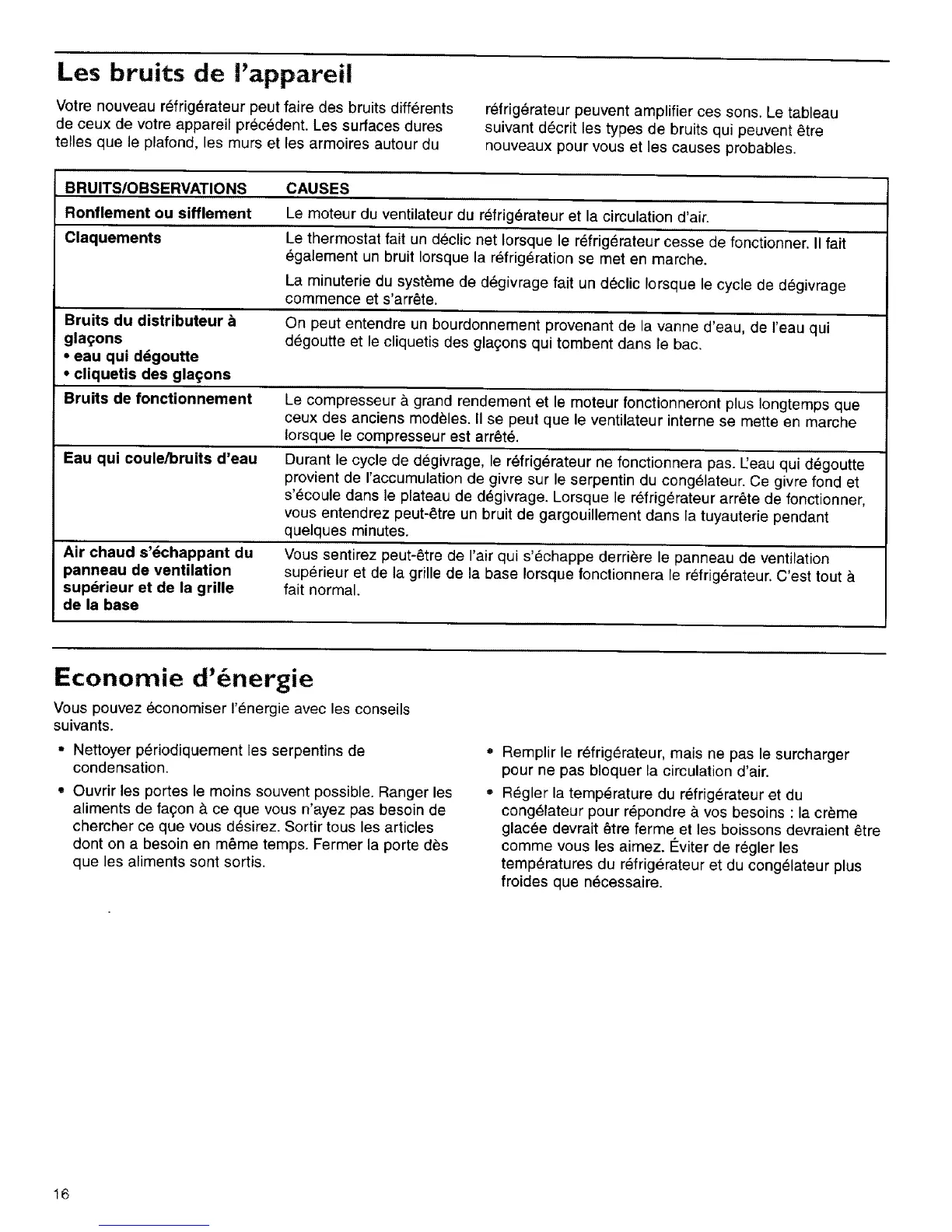 Claquements Le thermostat fait un declic net Iorsque le r_frigerateur cesse de fonctionner. II fait