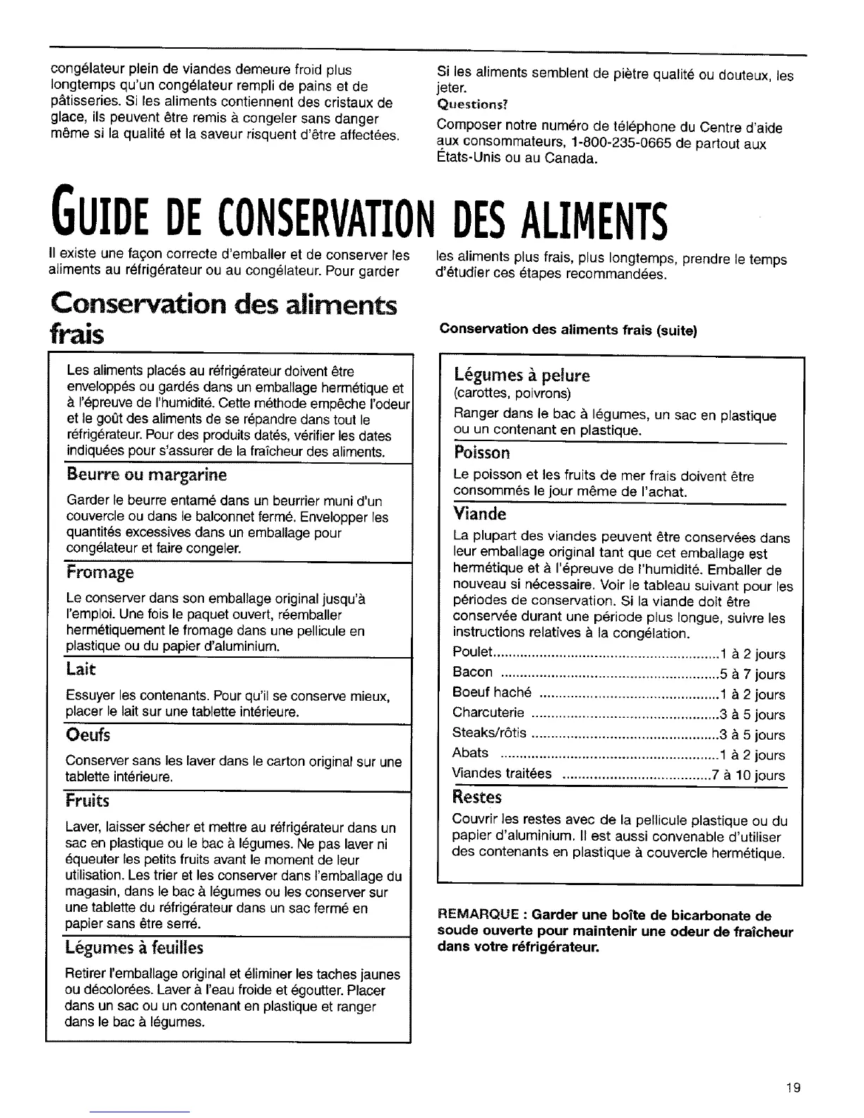 Conservation des aliments frais (suite)