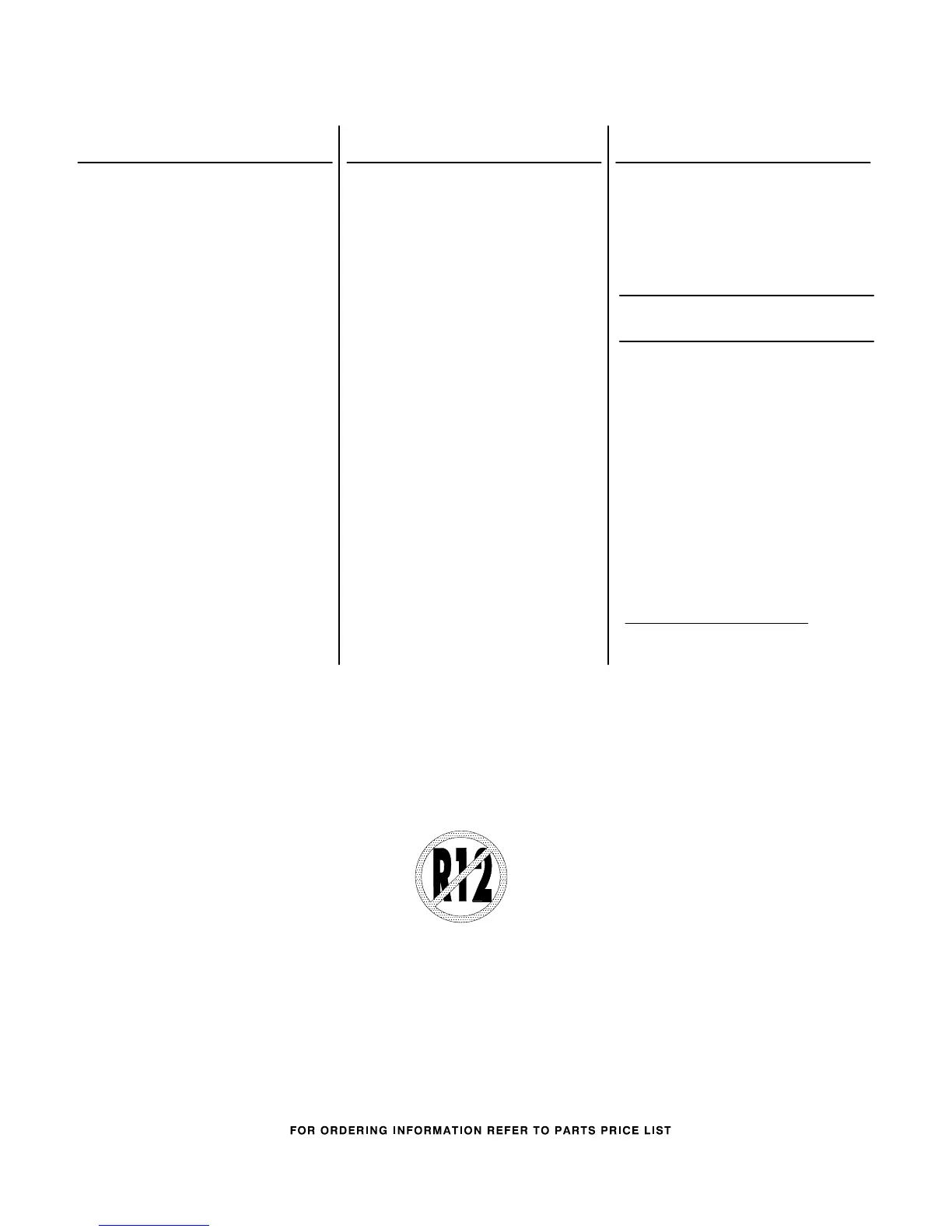 Following Parts Not Illustrated