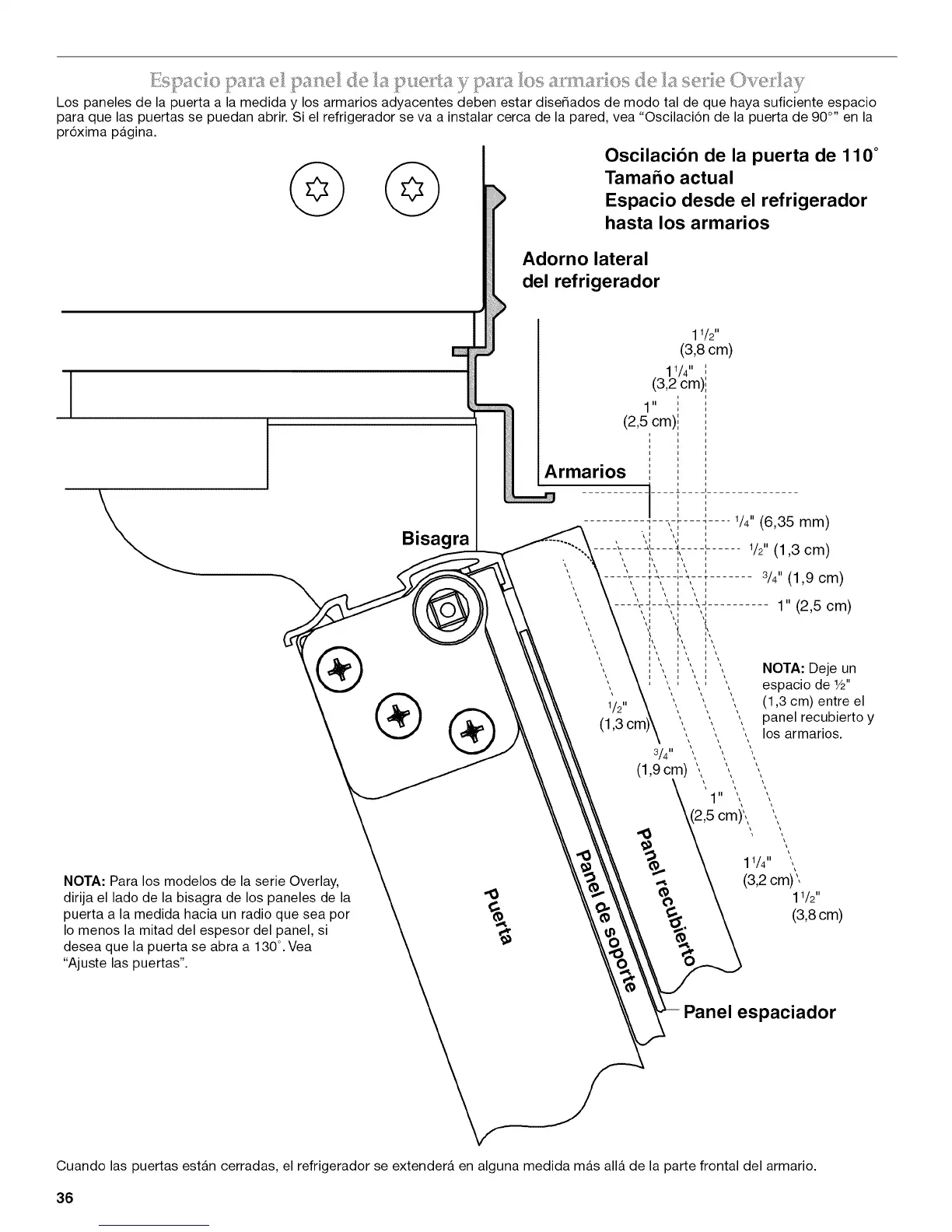 Cuando las puertas estan cerradas, el refrigerador se extenderA en alguna medida m_s alia de la parte frontal del armario.