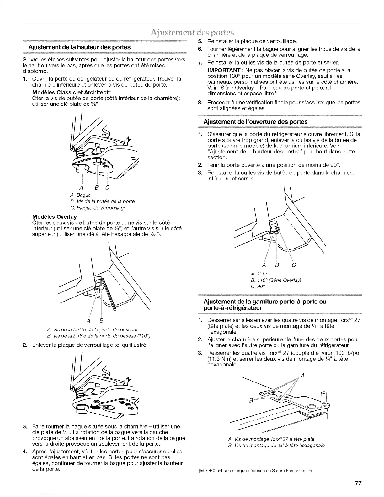 "Ajustement de la hauteur des portes" plus haut dans cette
