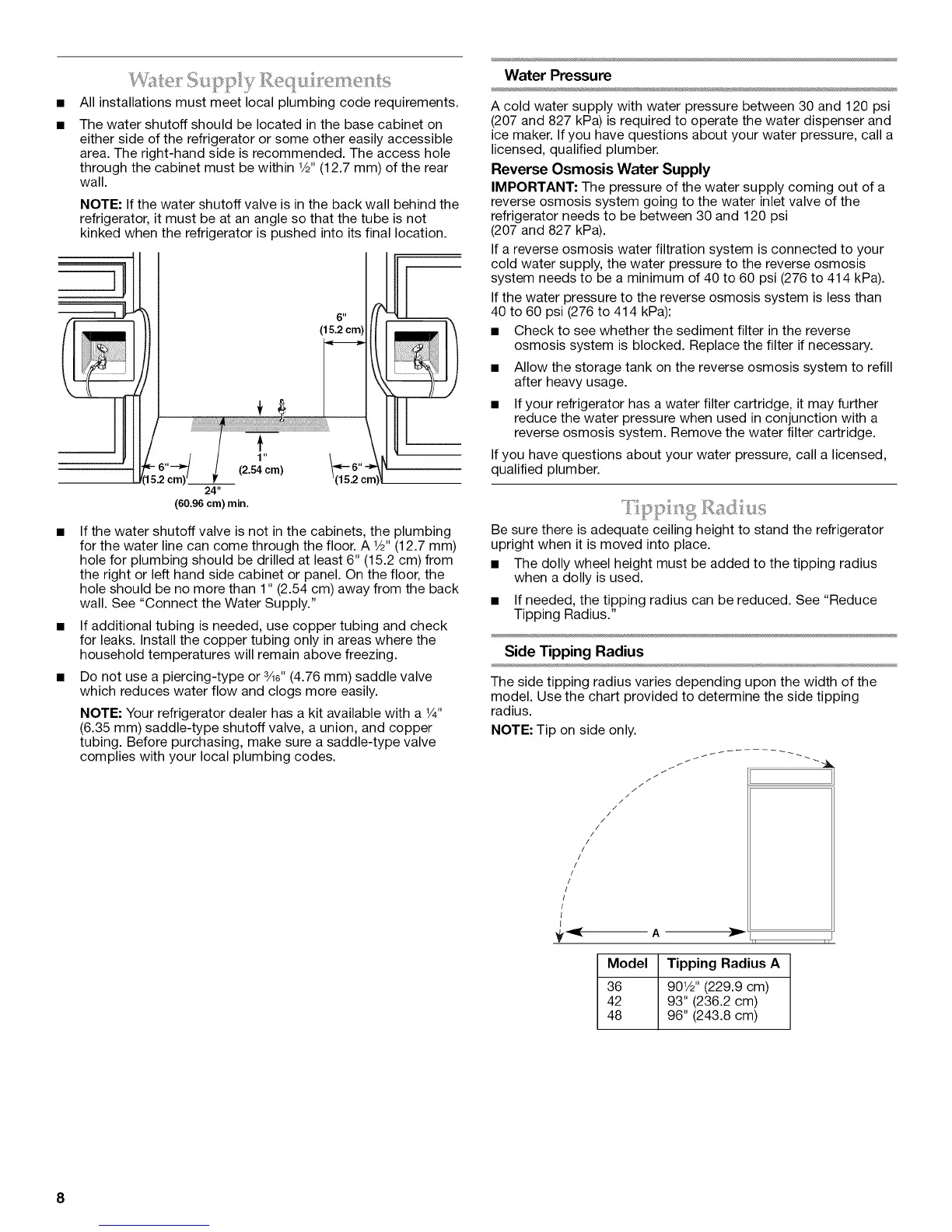 ice maker. If you have questions about your water pressure, call a