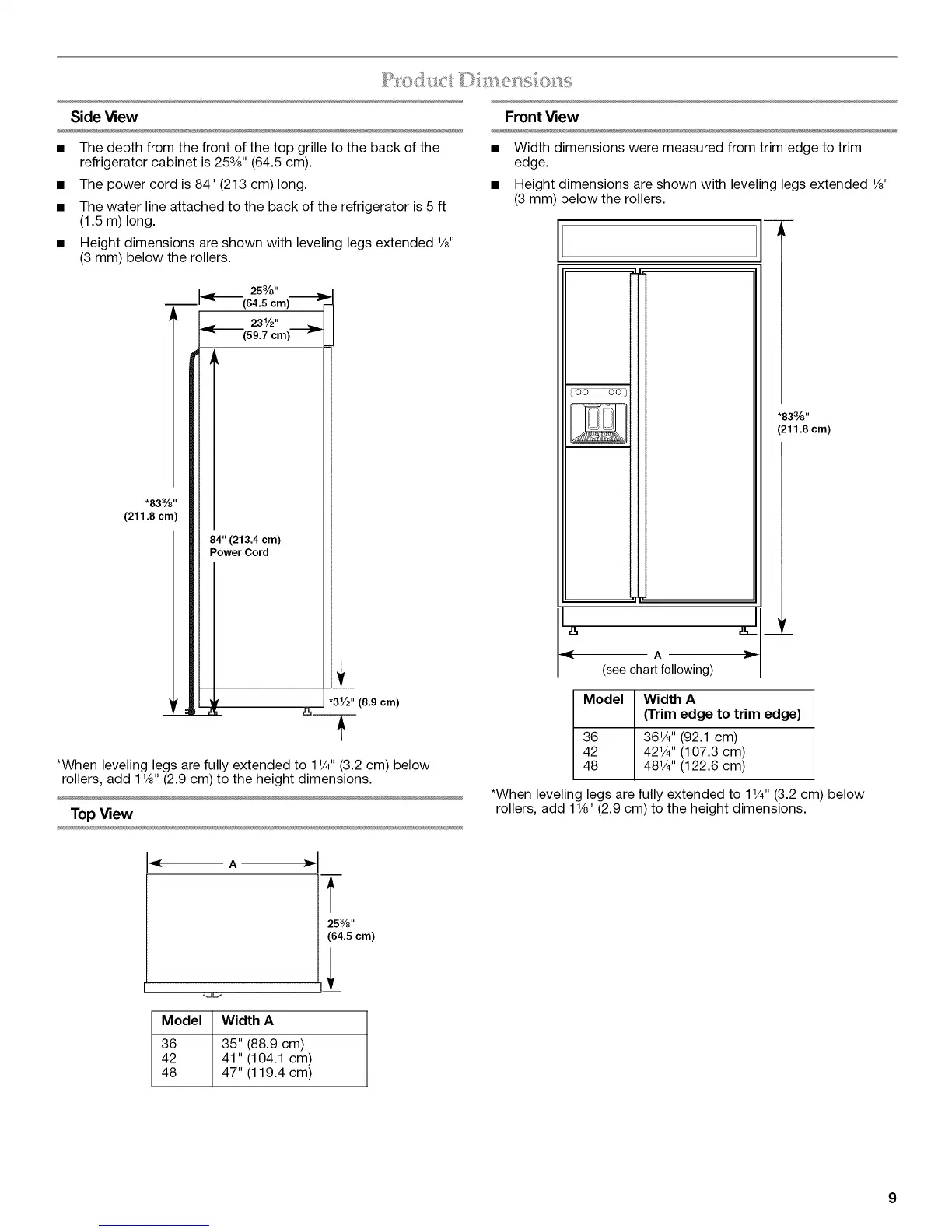 *When leveling legs are fully extended to 1V4"(3.2 cm) below