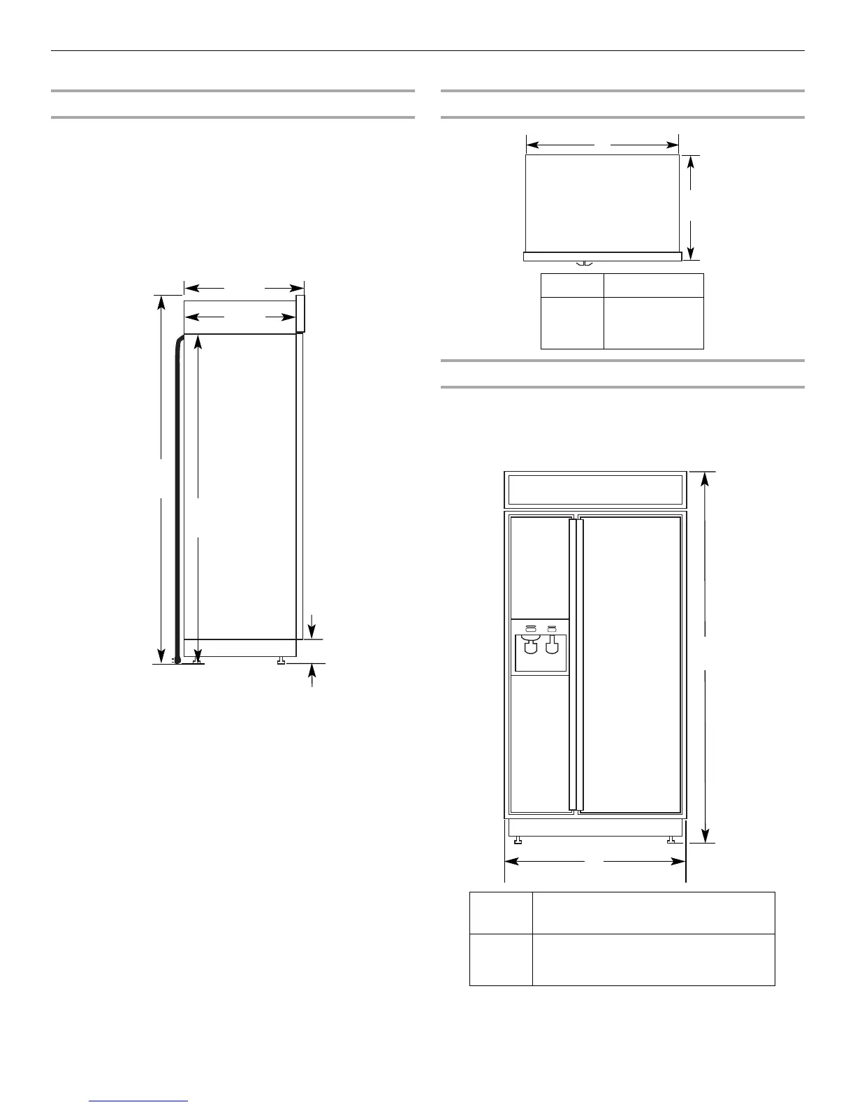 posterior del gabinete del refrigerador es de 25¹⁄₈" (64 cm).