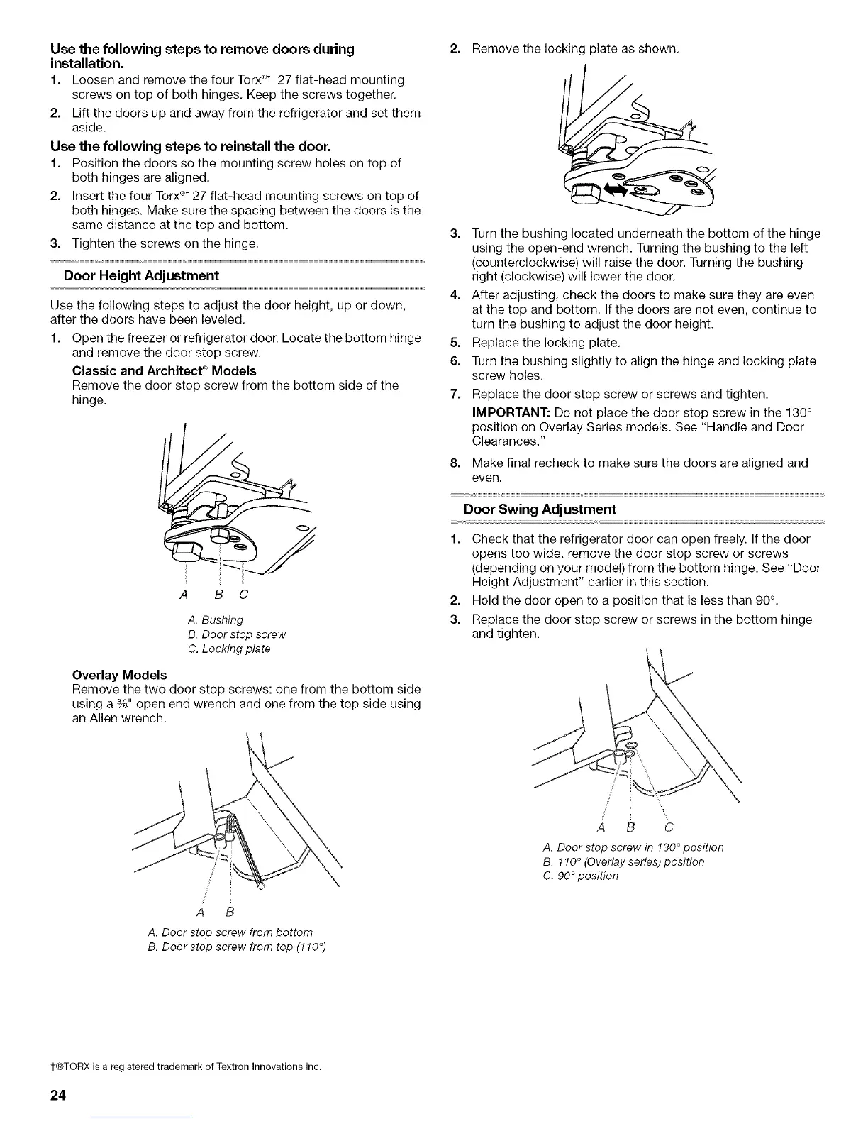 IMPORTANT: Do not place the door stop screw in the 130 °