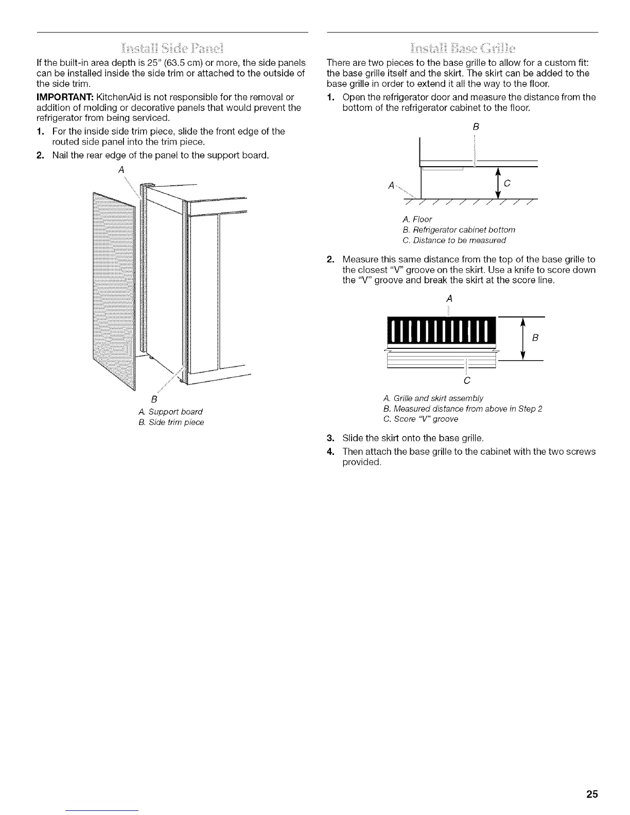 If the built-in area depth is 25" (63.5 cm) or more, the side panels