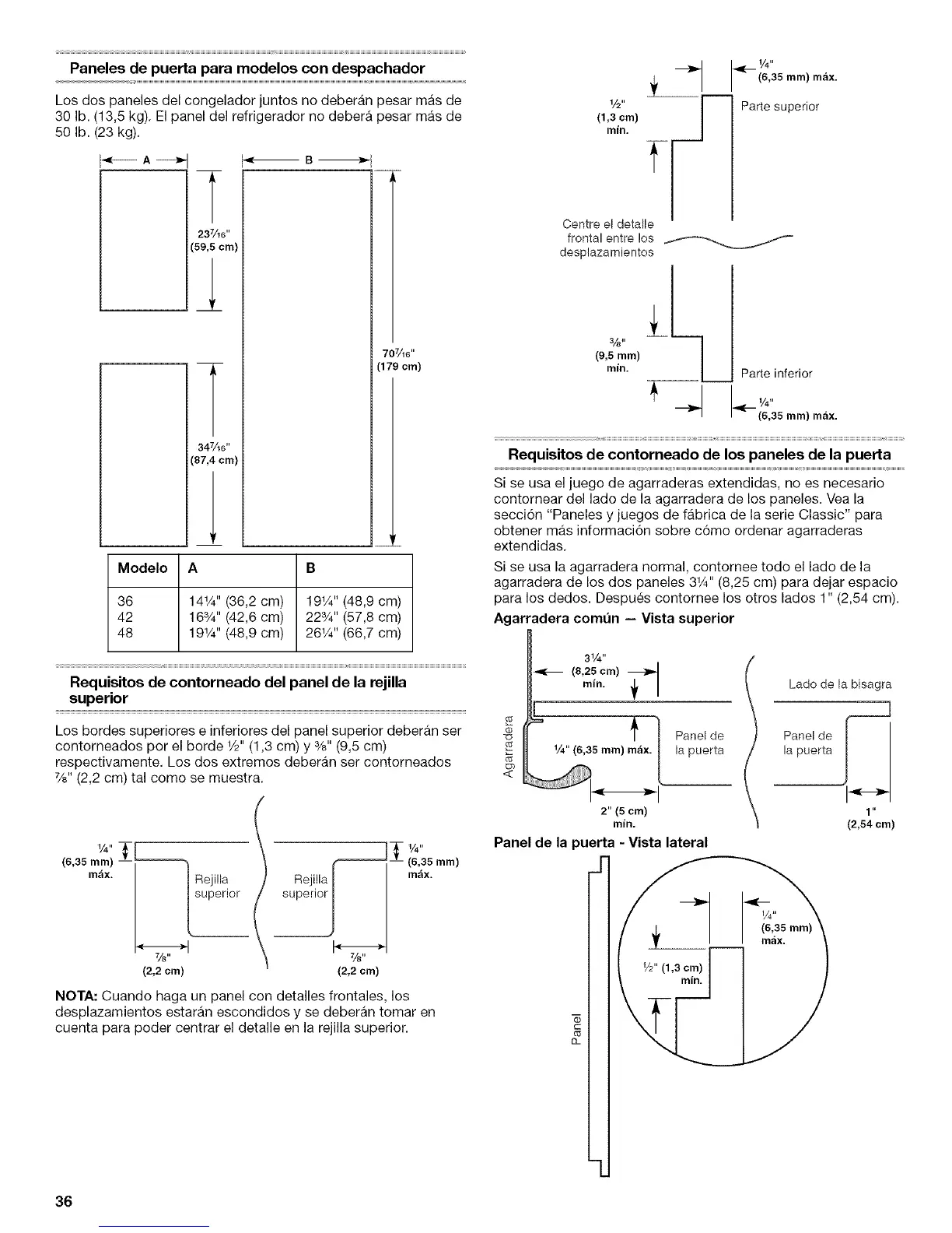 30 lb. (13,5 kg). El panel del refrigerador no debera pesar mas de