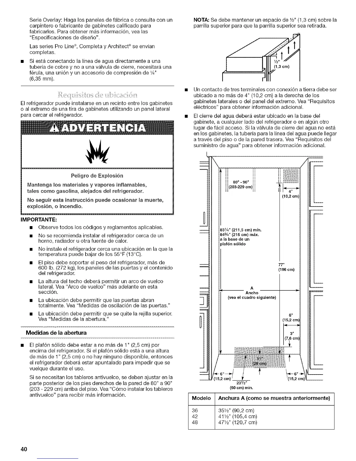 • La ubicaci6n debe permitir que se quite la rejilla superior.