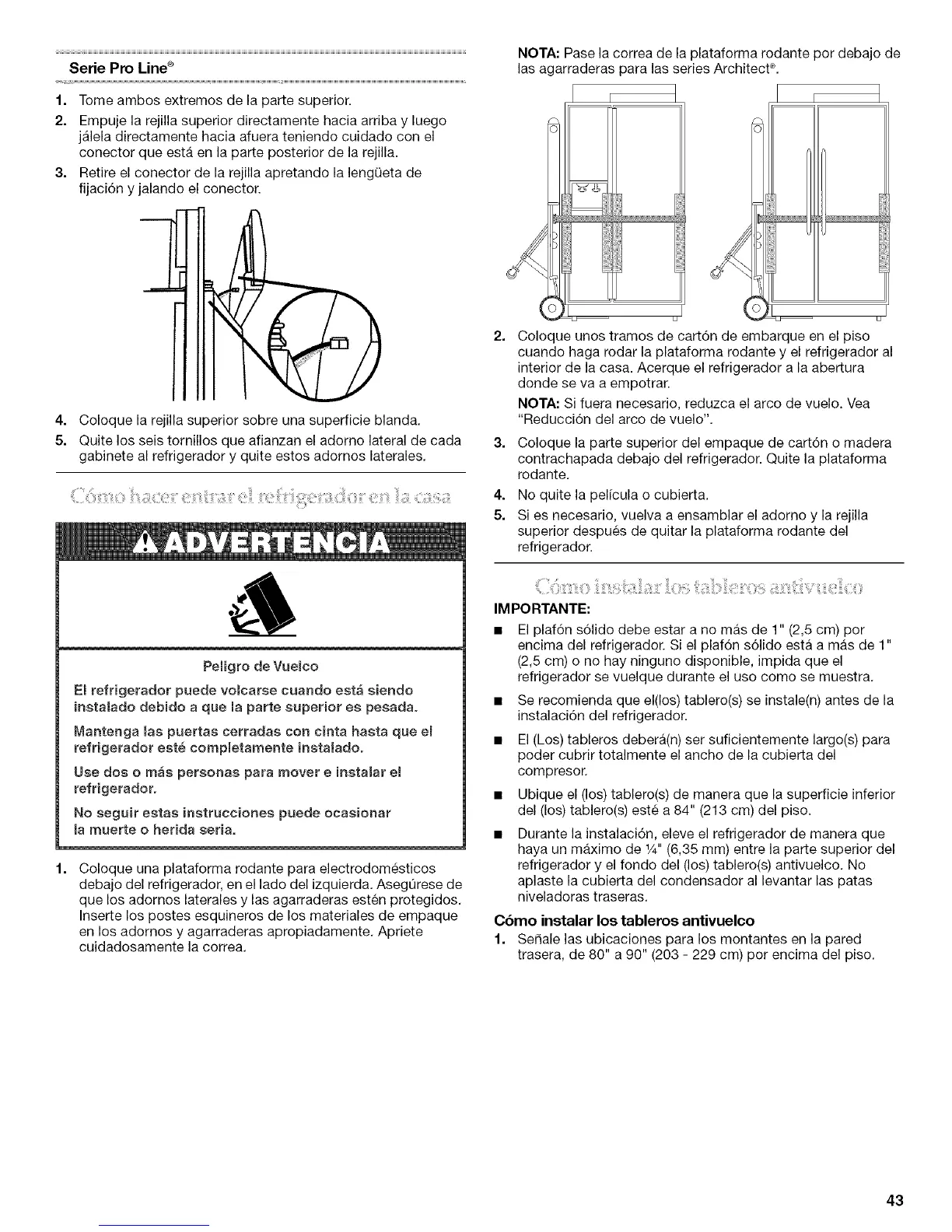 refrigerador y el fondo del (los) tablero(s) antivuelco. No
