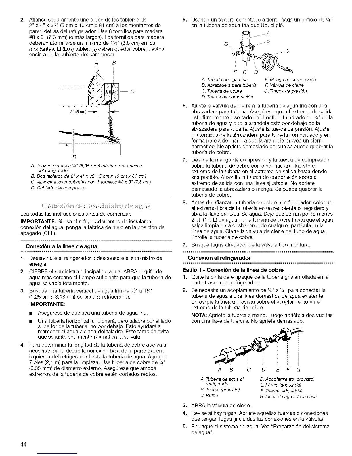 izquierda del refrigerador hasta la tuber[a de agua. Agregue