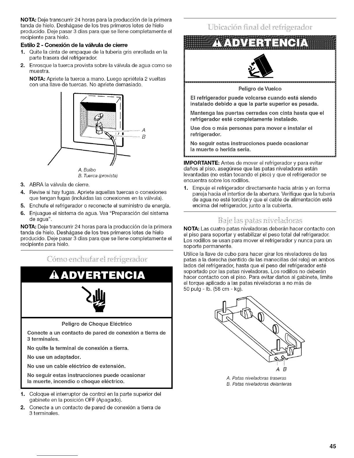NOTA: Las cuatro patas niveladoras deberan hacer contacto con