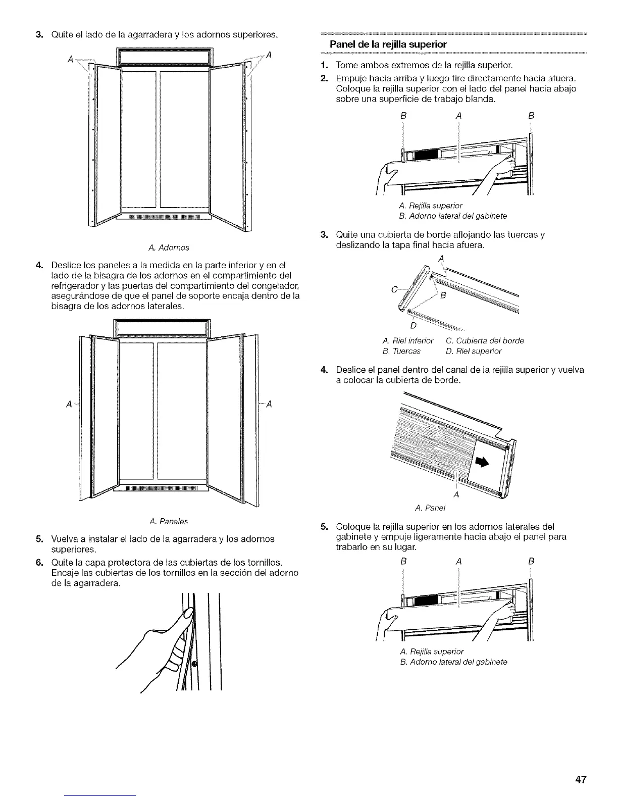5. Vuelva a instalar el lado de la agarradera y los adornos