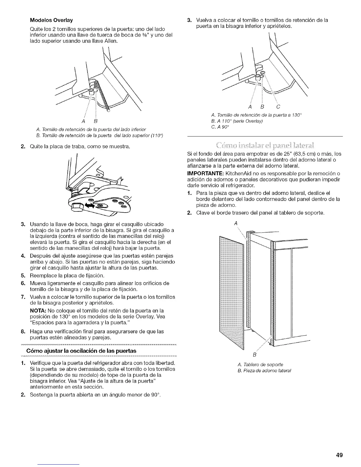 posici6n de 130° en los modelos de la serie Overlay. Vea