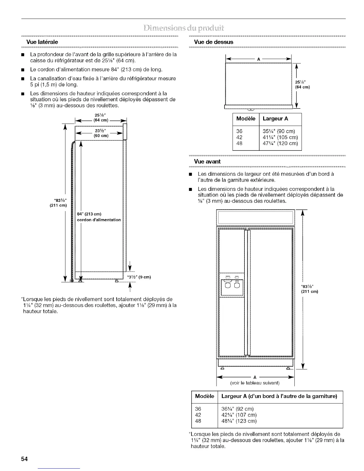 *Lorsque les pieds de nivellement sent totalement deployes de