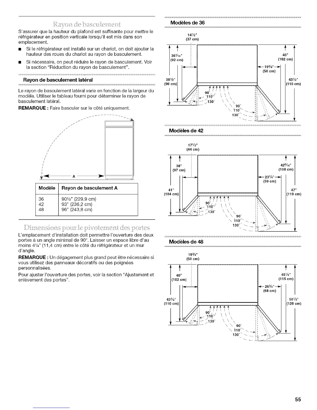 • Si necessaire, on peut reduire le rayon de basculement. Voir /(92 cm)