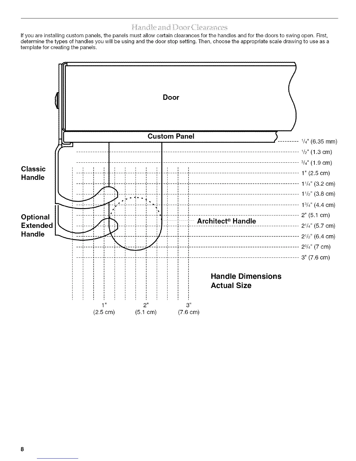 If you are installing custom panels, the panels must allow certain clearances for the handles and for the doors to swing open. First,