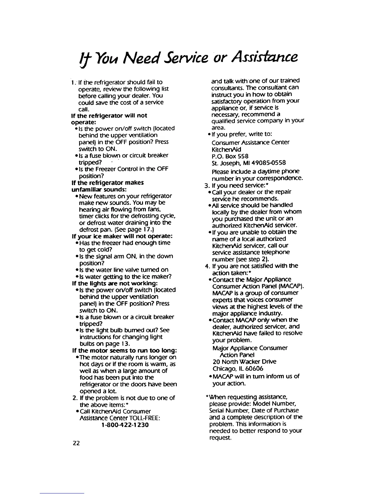 KitchenAid KSSS36D - Troubleshooting