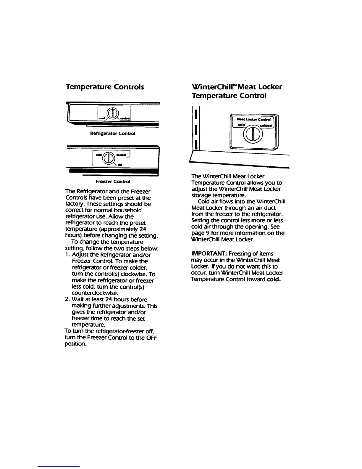 KitchenAid KSSS36D - Temperature Controls; Winterchill Meat Locker Temperature Control