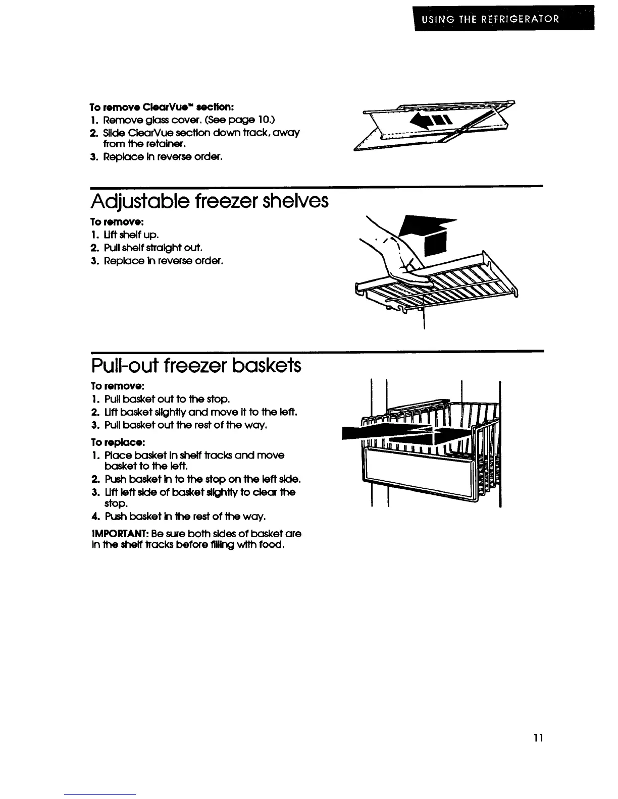 KitchenAid KSSS42M - Adjustable Freezer Shelves; Pull out Freezer Baskets; To Remove Clearvue Section
