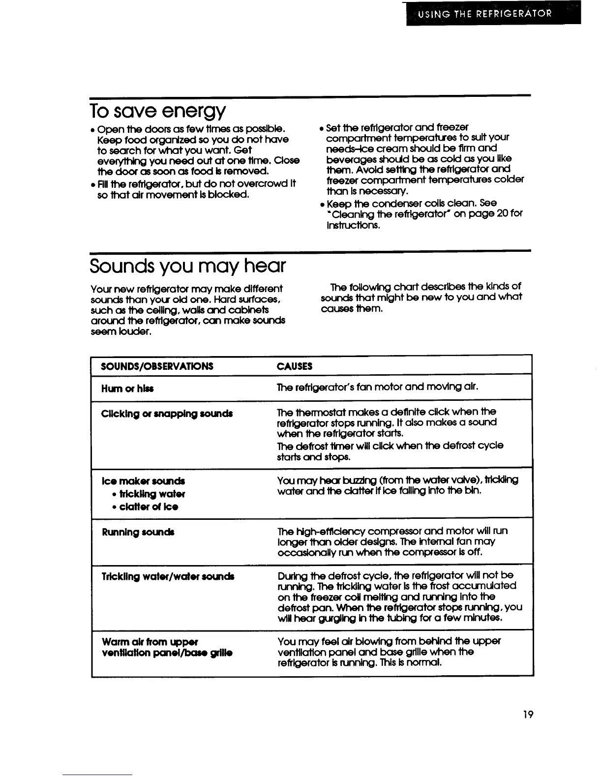 KitchenAid KSSS42M - To Save Energy; Sounds You May Hear