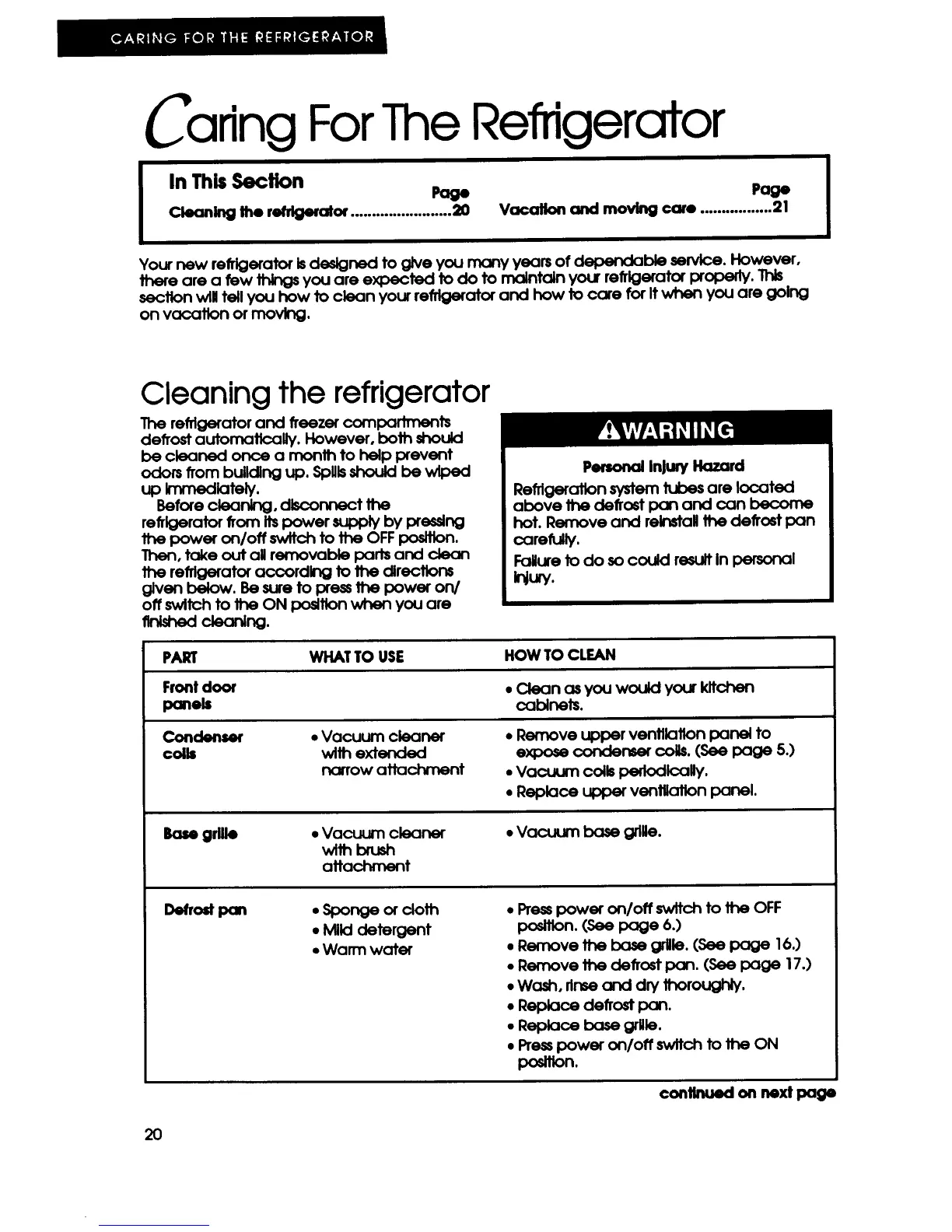 KitchenAid KSSS42M - Caring for the Refrigerator; Refrigerator Cleaning Procedures
