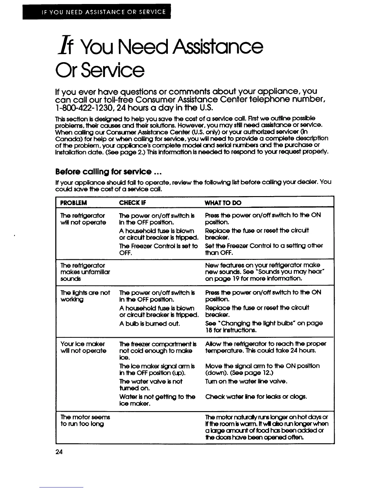 KitchenAid KSSS42M - Assistance and Service Information; Troubleshooting Common Problems