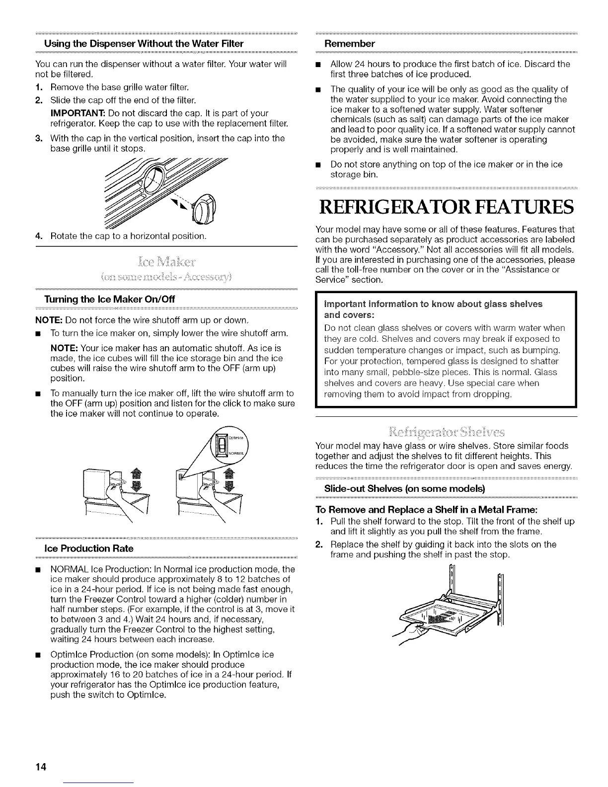 • To turn the ice maker on, simply lower the wire shutoff arm.