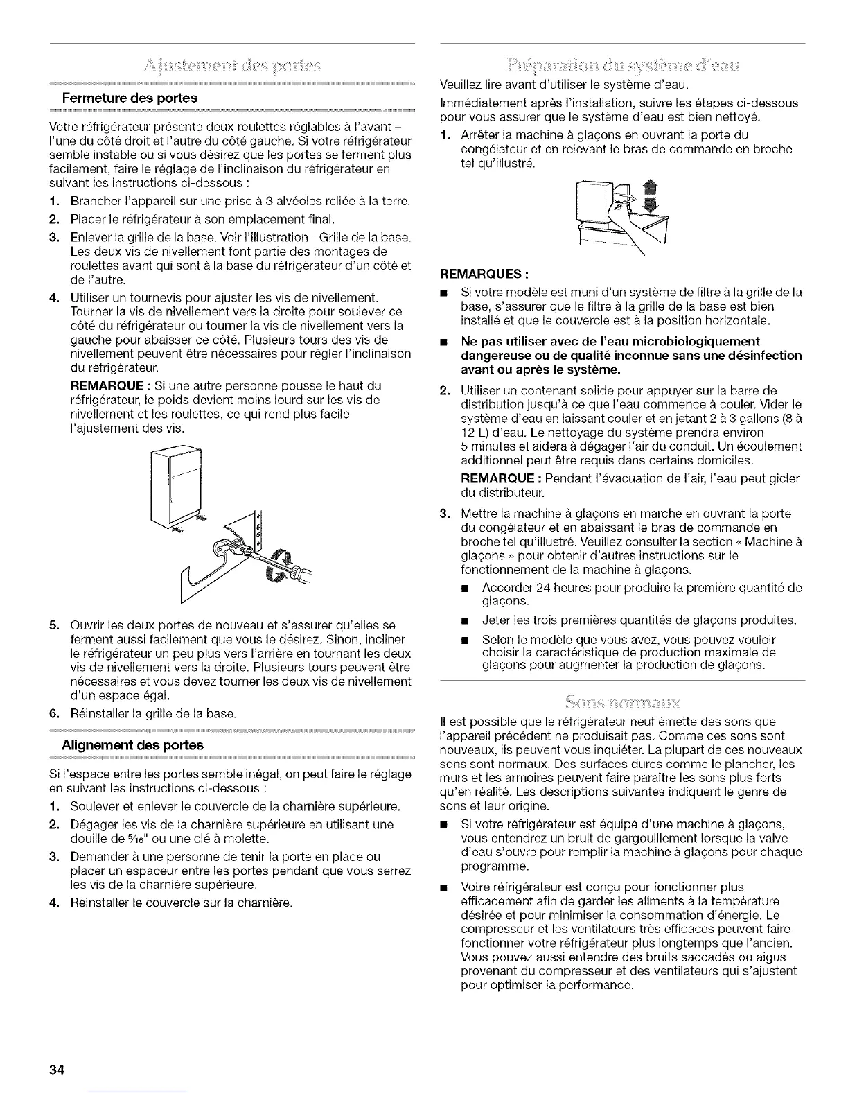 nivellement peuvent 6tre necessaires pour regler I'inclinaison