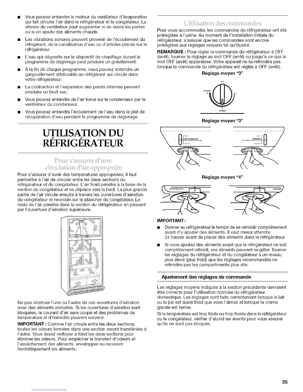REMARQUE • Pour regler la commande du refrigerateur a OFF