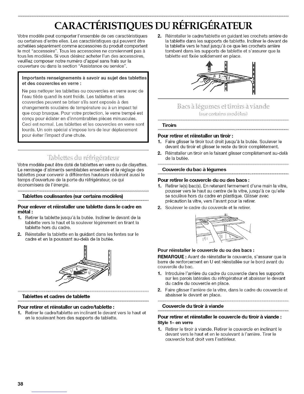 Votre modele peut _tre dote de tablettes en verre ou de clayettes.