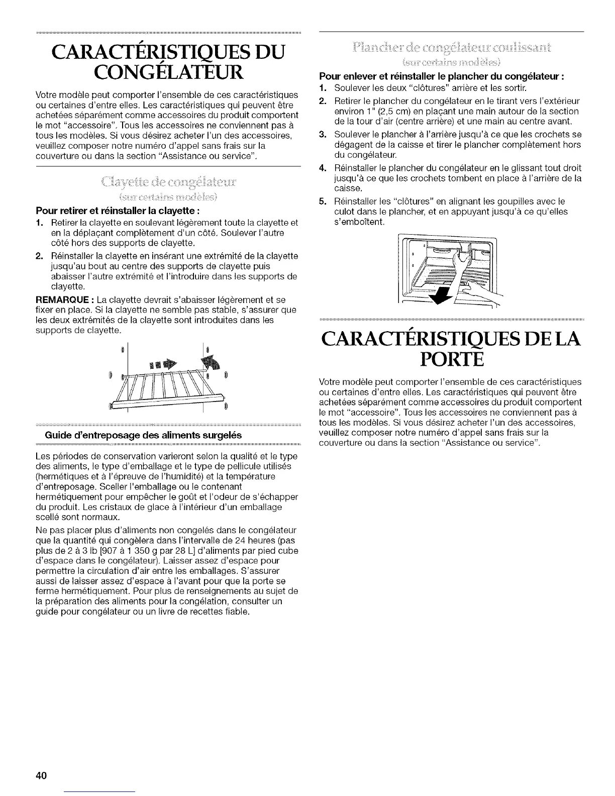 Pour retirer et r6installer la clayette :