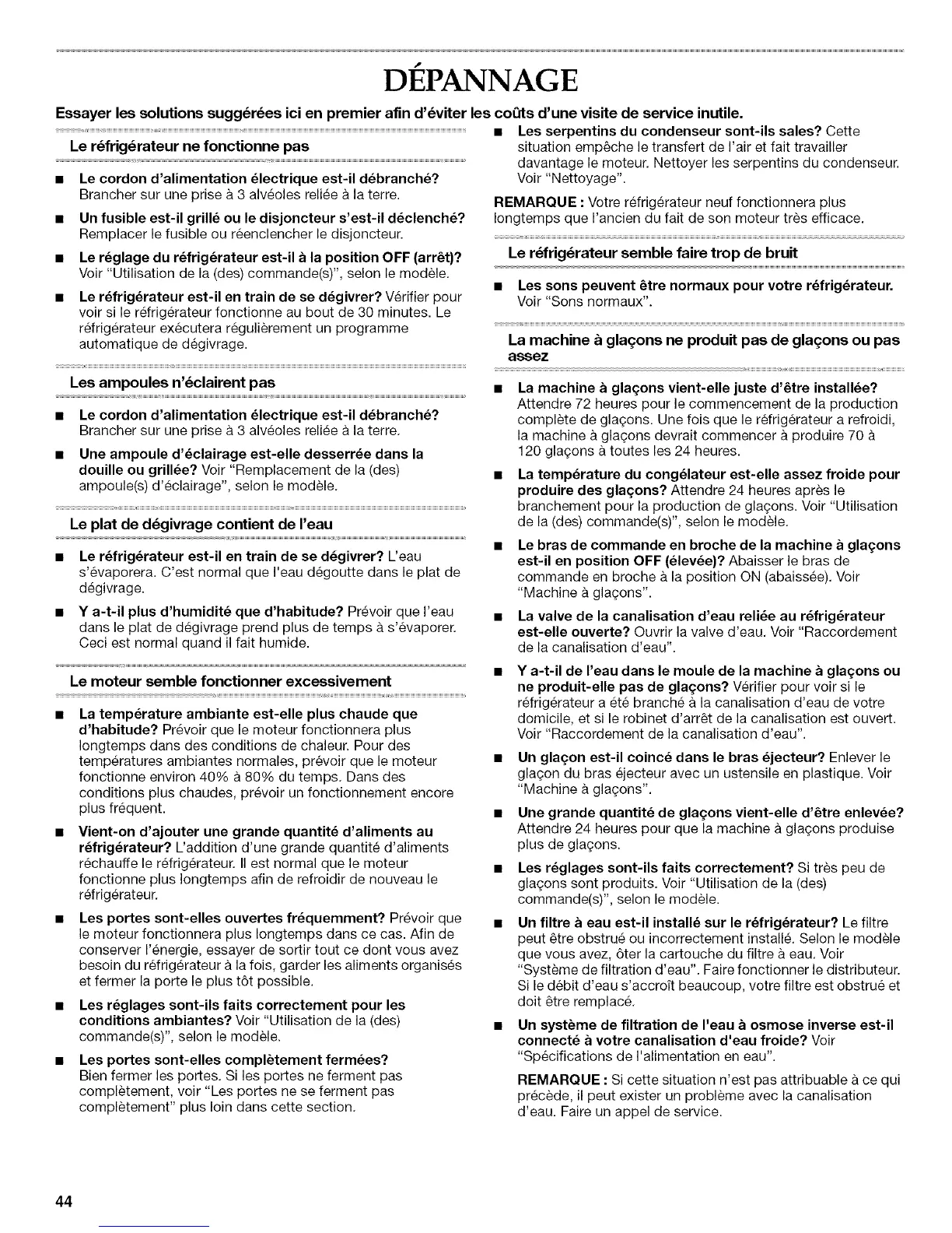Essayer les solutions sugg6r6es ici en premier afin d'6viter les coOts d'une visite de service inutile.