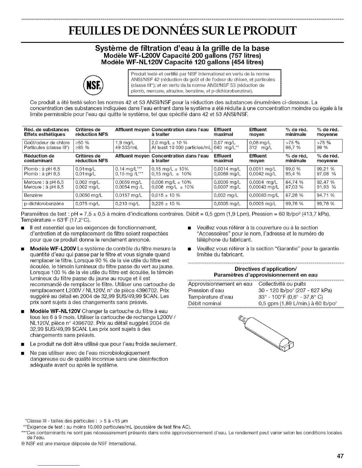 (cIasse II1"); et en vertu de la norme ANSI/NSF 53 (r_duction de
