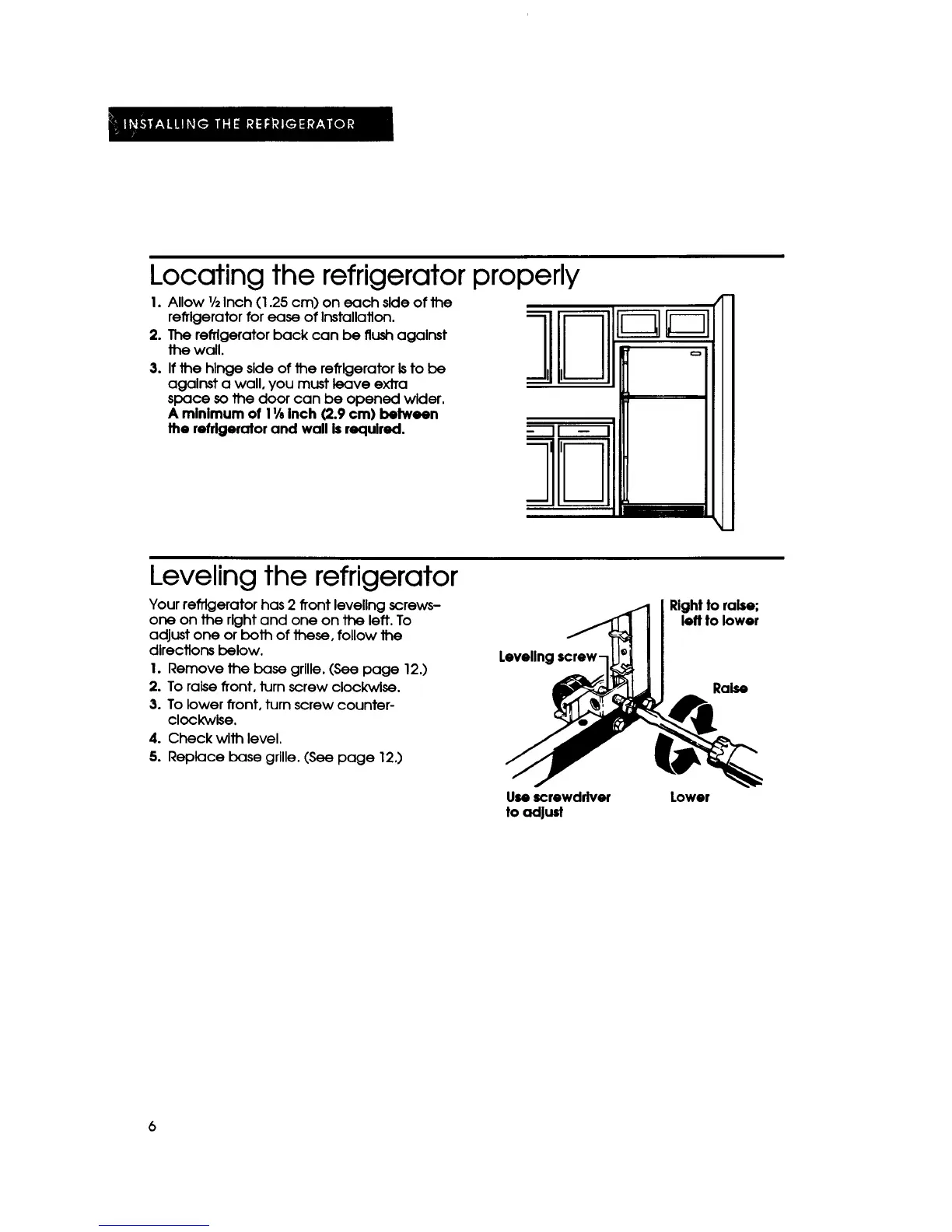 KitchenAid KTRC18K - Locating and Leveling the Refrigerator