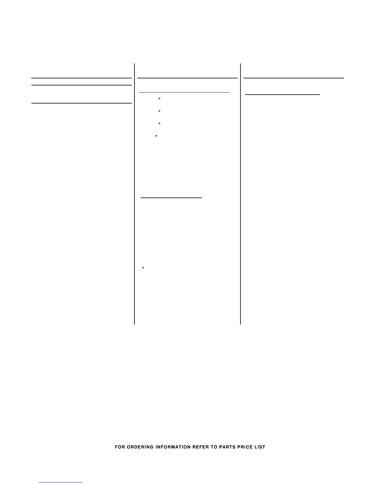 Parts Not Illustrated and