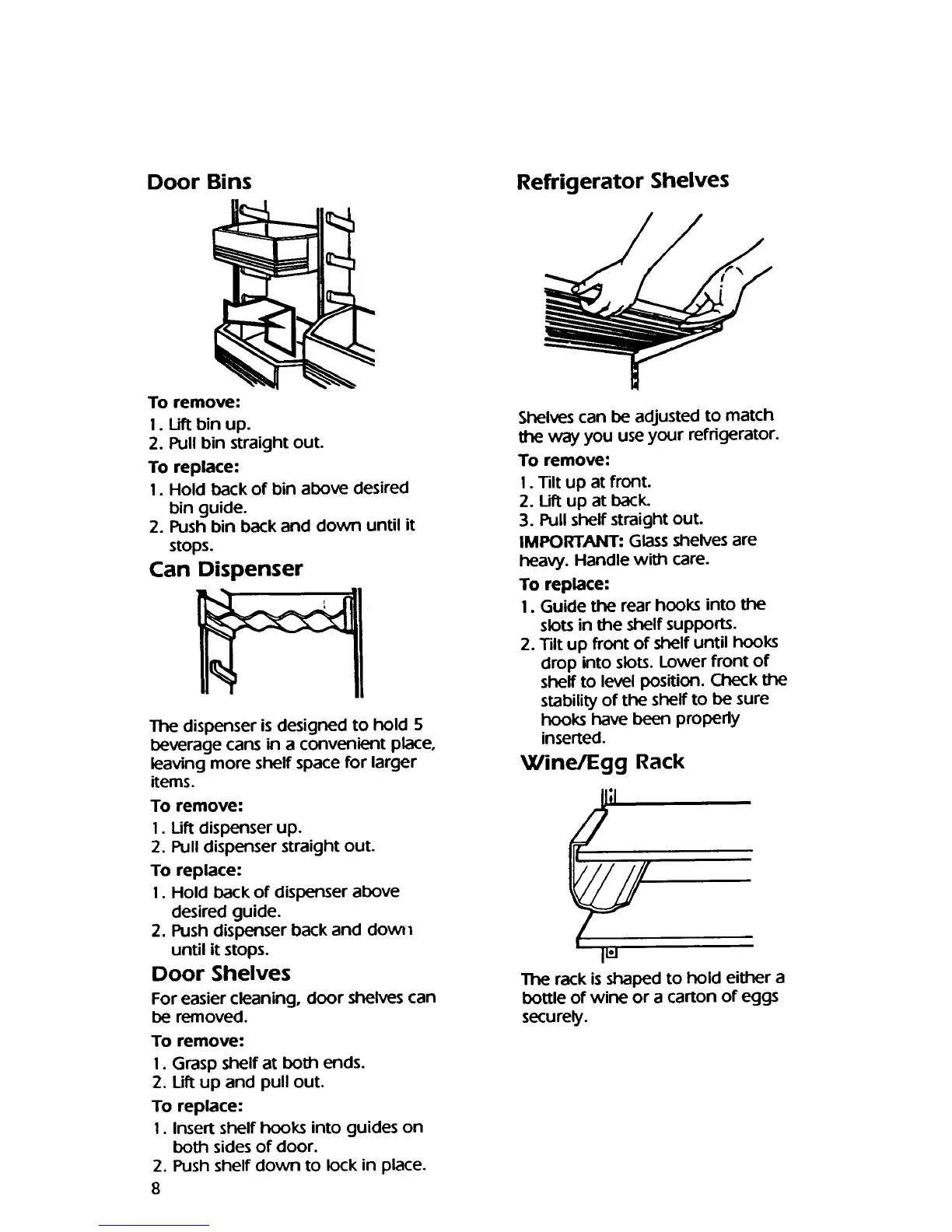 KitchenAid KTRS22M - Door Bins; Can Dispenser; Refrigerator Shelves; Wine;Egg Rack