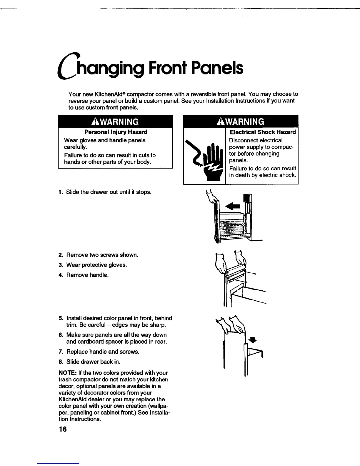 KitchenAid KUCC151 - Changing Front Panels; Customizing Front Panel Appearance