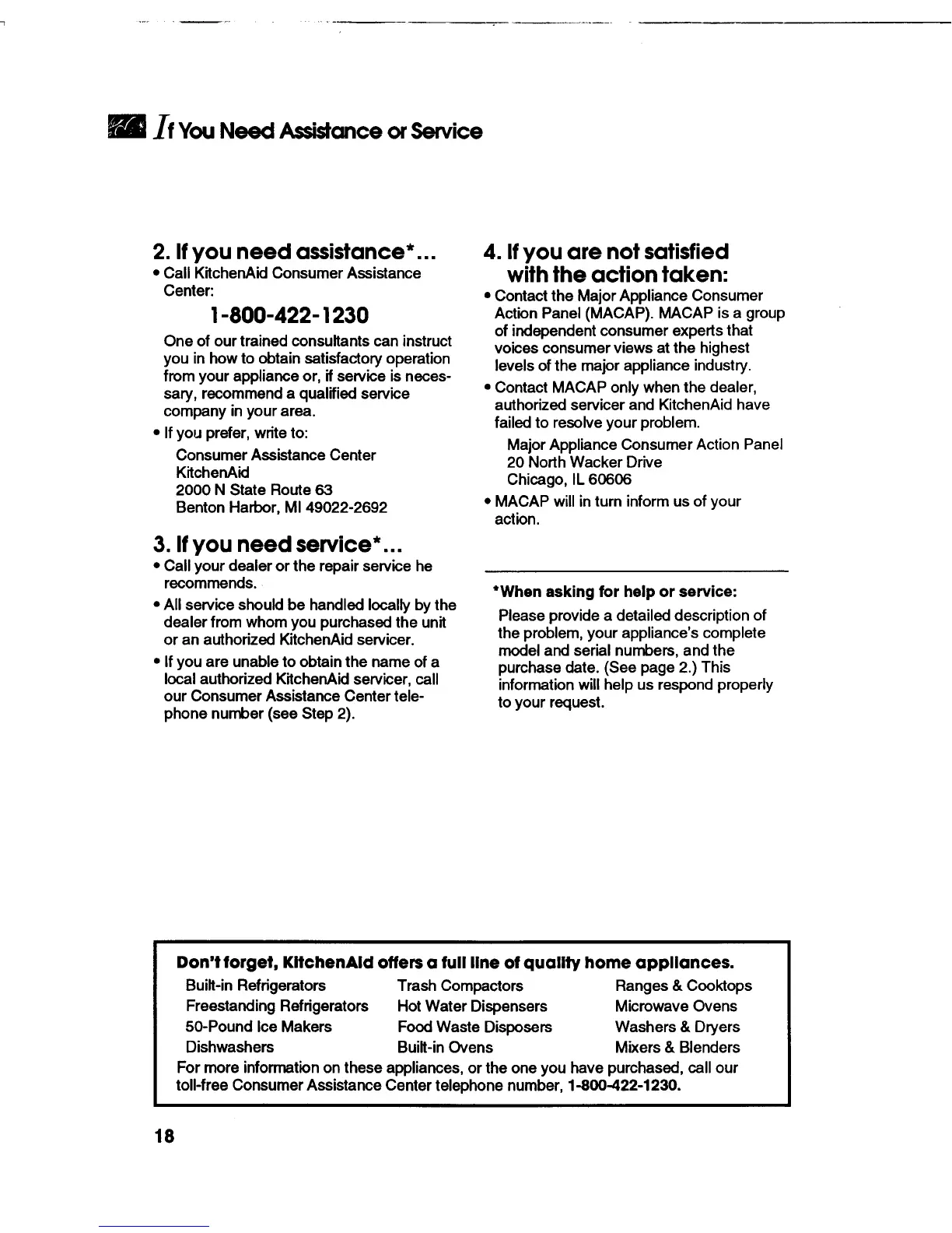 KitchenAid KUCC151 - Getting Help: Support and Service Contact