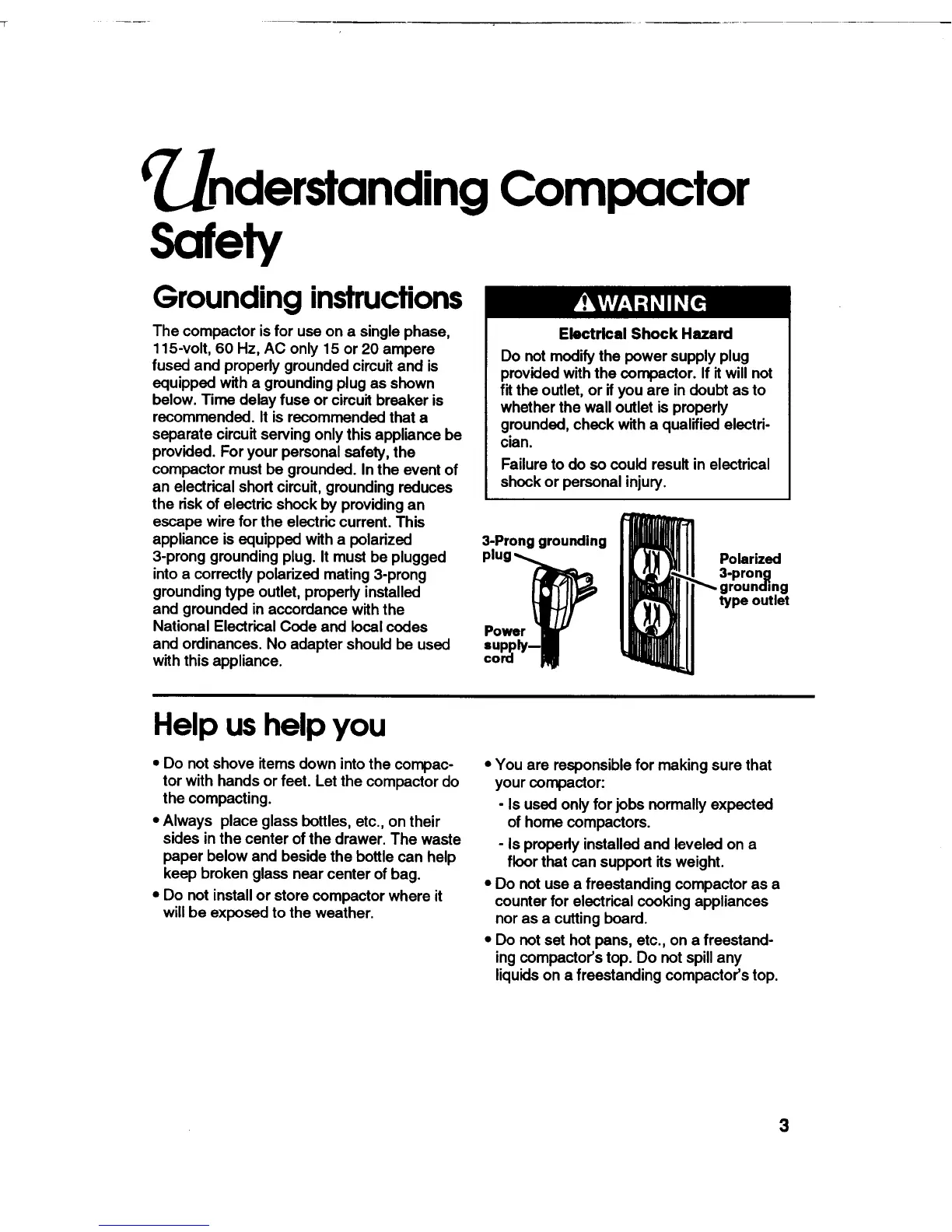 KitchenAid KUCC151 - Understanding Compactor Safety; Grounding and Electrical Safety; Safe Operation and Installation Practices