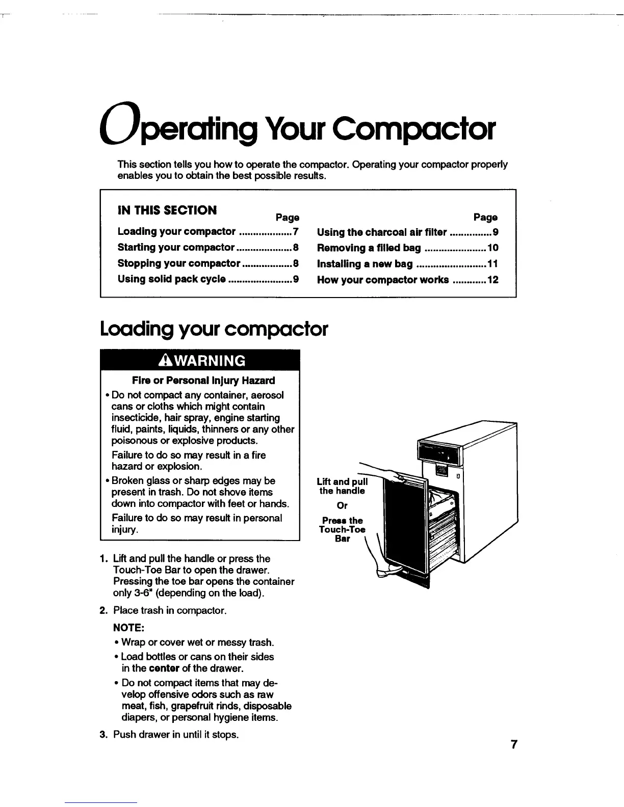 KitchenAid KUCC151 - Operating Your Compactor; Loading Trash into the Compactor